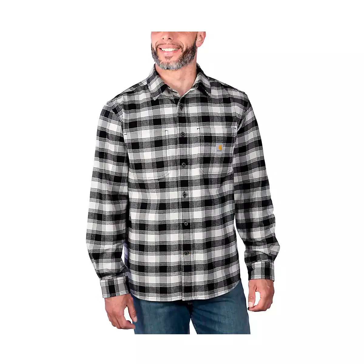 Carhartt flanellipaita tarjoaa tarvittavan liikkumisvapauden esimerkiksi puutöissä tai viljasäiliöiden täyttämisessä. Keskipainoinen puuvillakangas tuntuu pehmeältä mutta kestää hyvin käyttöä. Paitaan lisätty elastisuus helpottaa yläpuolelle kurottamista ja lisää käyttömukavuutta.