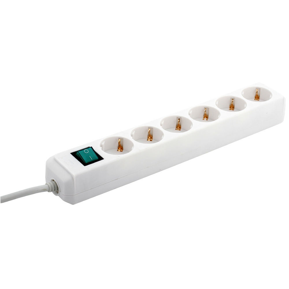 6-haarainen sisäjatkojohto ON/OFF -kytkimellä - johdon pituus 1,5 m (H05VV-F 3G1,5) - pistorasioissa lapsisuoja - sisäkäyttöön - väri valkoinen