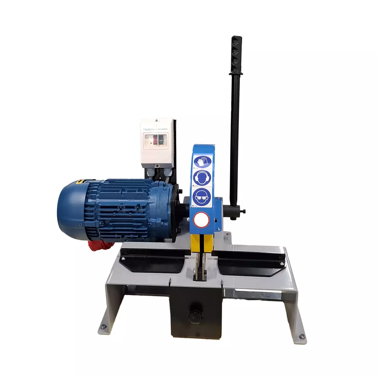 Toimitukseen kuuluu sileä leikkuuterä. Koneen jalustassa on valmiina pultinreiät, jotta se voidaan kiinnittää työtasoon.