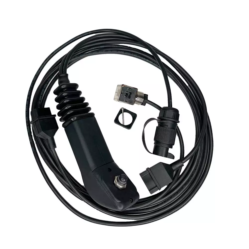 Pakettiin kuuluu joystick-kahva yhdellä napilla, 1 x 4,2 m sähköjohto Hirschmann-pistokkeella sekä 1 x 1,2 m johto 3-napaisella pistokkeella, joten sillä saa solenoidille saa otettua suoraan sähkön traktorin pistokkeesta. Samalla kahvalla saa siis sekä sähkön että ohjauksen venttiilille.
