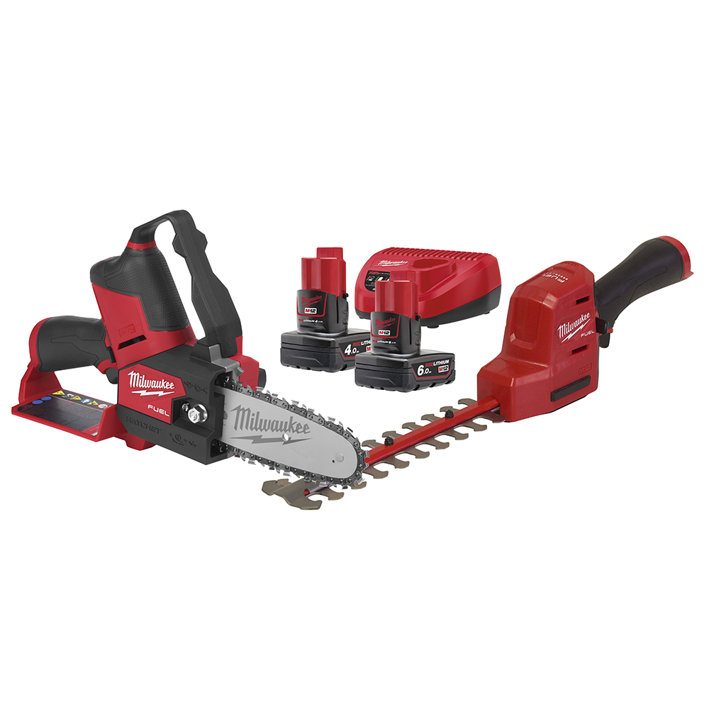 Täydellinen akkukonesarja esimerkiksi puutarhan hoitoon! Sisältää pensasleikkurin, ketjusahan sekä kaksi tehokasta Milwaukee akkua ja laturin!