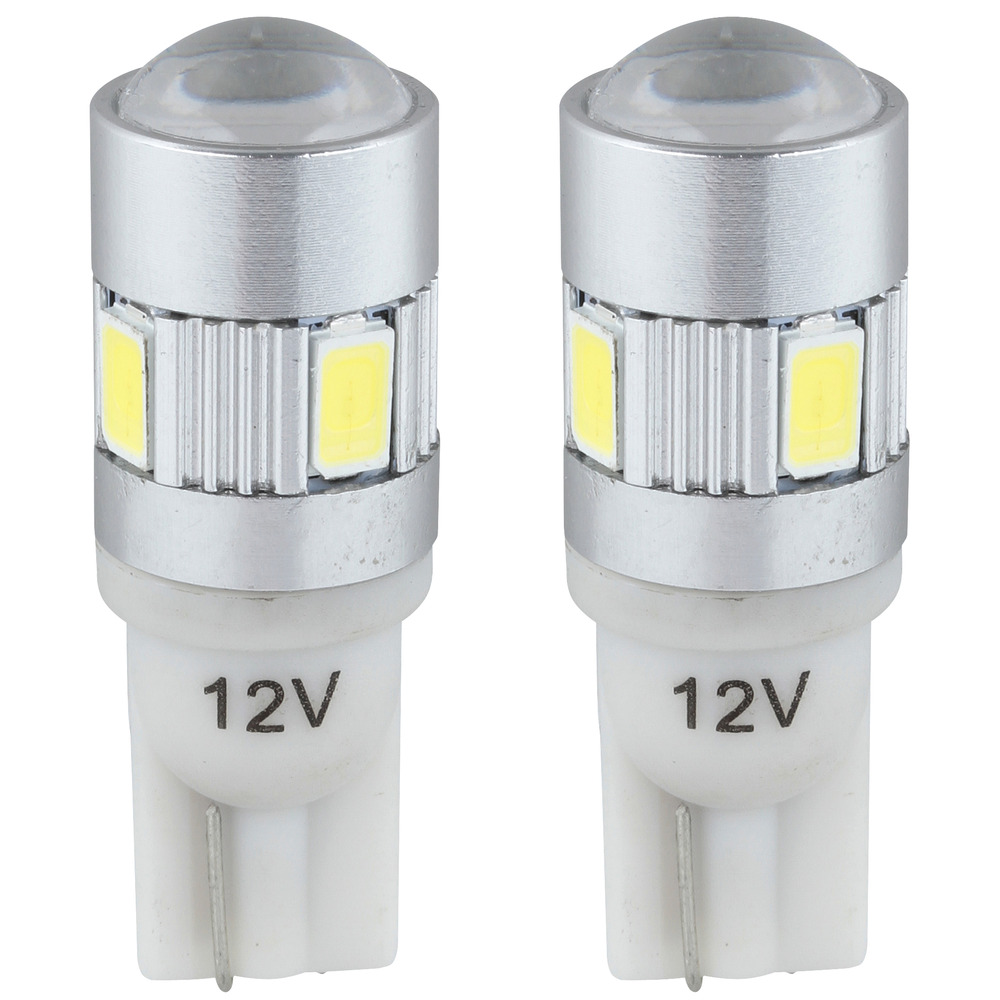 12 V - kanta T10 (W5W) - vastaa 3 - 5 W T10 lasikantapolttimoa (Ø 9,5 mm) - virtapiikkisuojattu 18 V asti - 175 lumen - värilämpötila 6000 K - 160 ± 10mA - 6 x 5730 SMD led - CANBUS yhteensopiva... Lue lisää