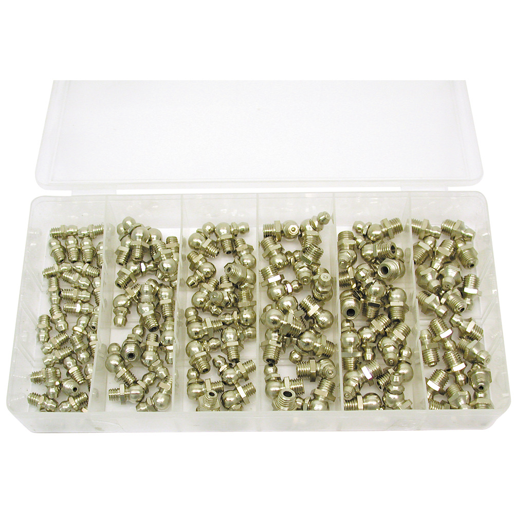 Sarja sisältää 110 kpl erilaisia rasvanippoja: - 30 kpl 6 x 1 suora - 20 kpl 8 x 1 suora - 15 kpl 6 x 1 45 astetta - 15 kpl 8 x 1 45 astetta - 15 kpl 6 x 1 90 astetta - 15 kpl 8 x 1 90 astetta... Lue lisää