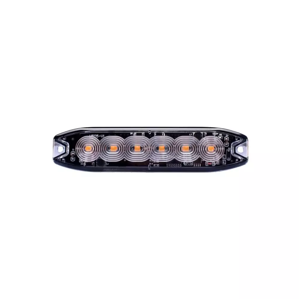 Slim-mallinen keltainen LED-tasovilkku, jossa 6 x 3W tehoLED, 19 välähdyskuviota, synkronointimahdollisuus ja ECE R65/R10 -hyväksyntä.